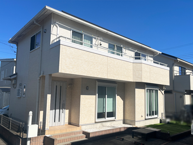 使用材料 | 外壁塗料:フッ素REVO1000-IR 屋根塗料:マルチコート+ハイグロストップ 付帯塗料:2液弱溶剤フッ素塗料 シーリング材:オートンイクシード |