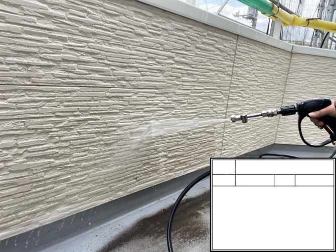 外壁・屋根に付着した汚れやカビ、コケ、古い塗膜などを高圧水で除去。