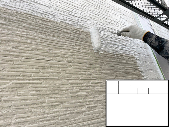サイディングの素地と塗料を密着させる「下塗り剤」を塗布。