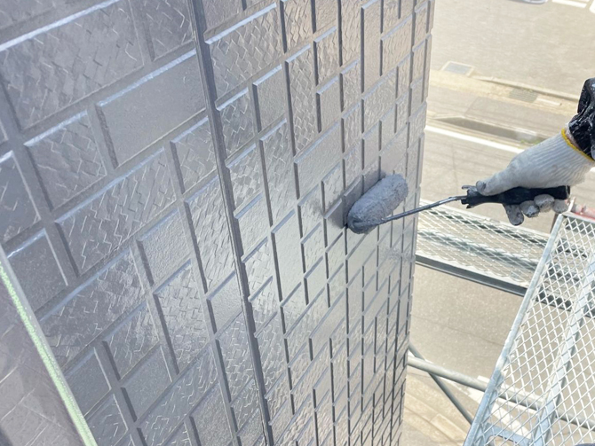 外壁塗装(下塗り → 中塗り → 上塗り)。