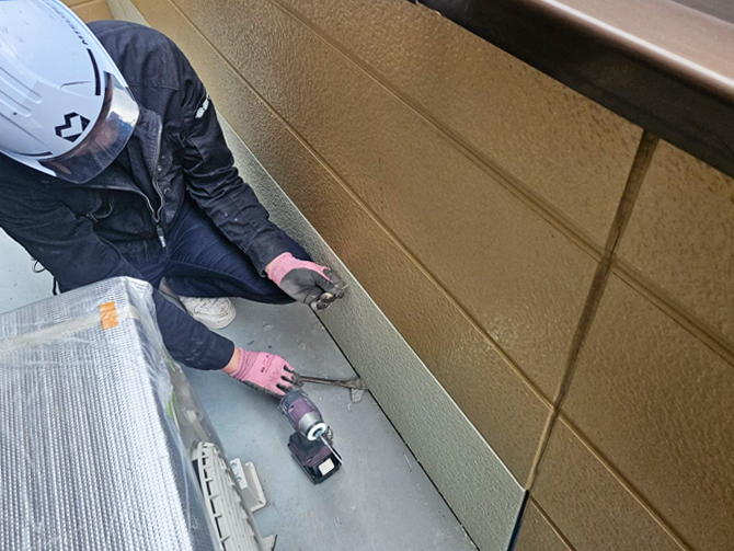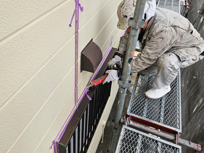 既存のサイディングを一部撤去し、新しいサイディング材に交換します。