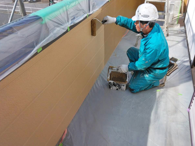 下塗り:下地との密着を良くするための専用プライマーを使用。